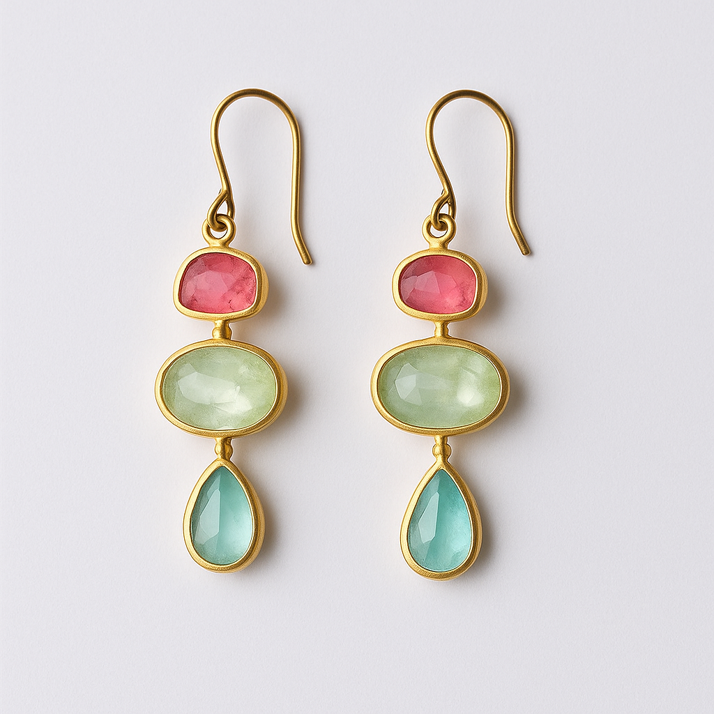 Experience the vibrant energy of the "Uffe" Earrings, where spontaneity meets elegance. With three stunning stones in red, green, and blue, these earrings create a perfect balance that dances like a cheerful melody.