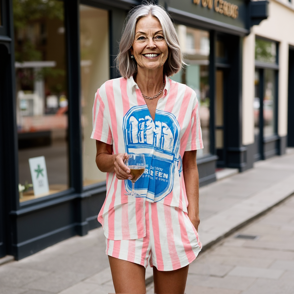 Embrace summer in style with our Silava short set, featuring a unique sardine print that adds a fresh vibe to your wardrobe. Every step feels like a vacation, making it ideal for beach walks, brunch in the sun, or relaxing at home.