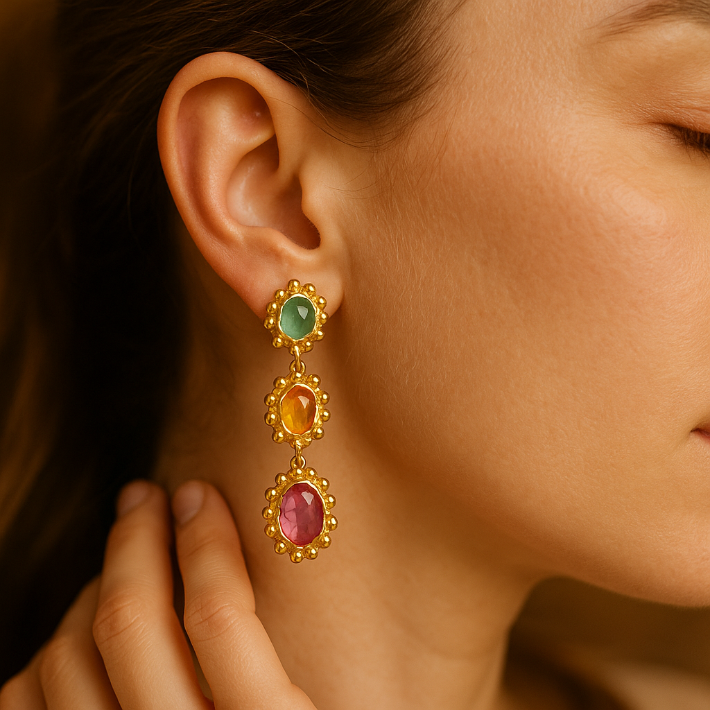 Undine | Gold-Plated Drop Earrings Featuring Vibrant Colored Stones